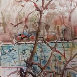 - Tree and river, watercolour, image 7 3/4″ x 6″, unsigned, attributed to Lucy Jarvis, $200.00