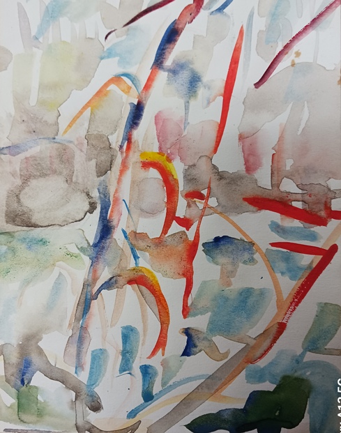 - Abstract, watercolour, image 7 3/4″ x 6″, unsigned, attributed to Lucy Jarvis, $100.00